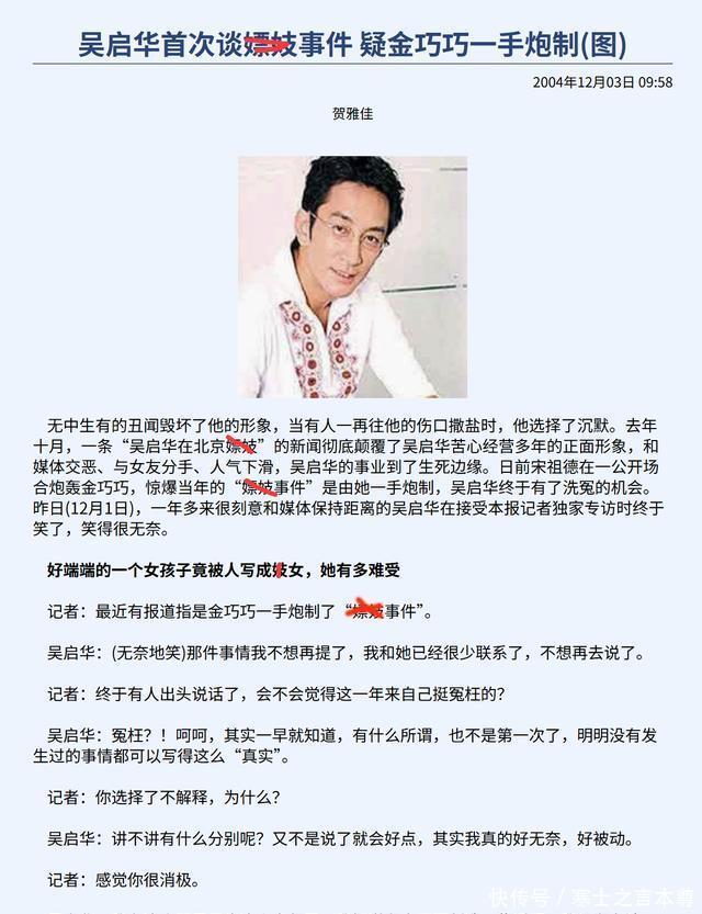 多年后金巧巧在接受李静访谈的时候说,这段感情之错在于她,她说那时候她恋爱经历太少,不懂得怎么与相爱的人相处。 她说吴启华是一个很好的男人,对她一直很好,她把两人不能在一起归结为有缘无分。